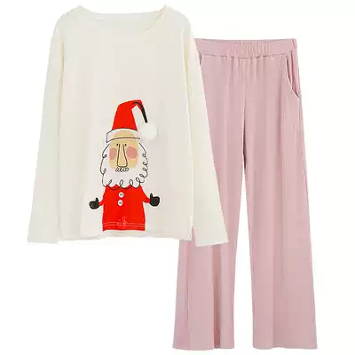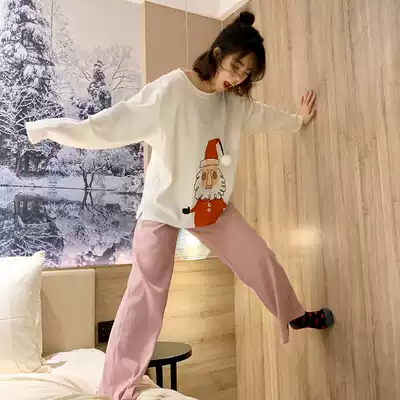 Bearded old man pure cotton pajamas female spring and autumn cute long-sleeved cartoon pullover thin autumn and winter Korean version of home service suit