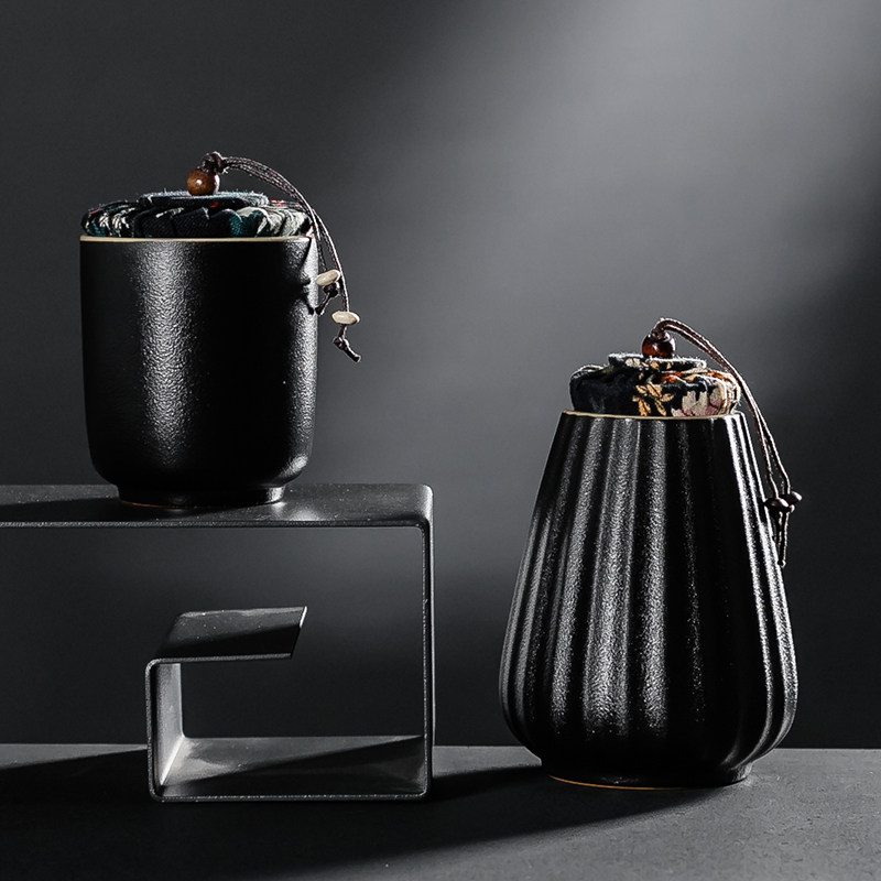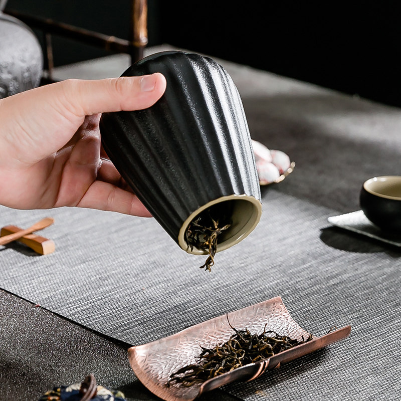 Black Pottery Tea Leaves Jar ceramic Moisture Storage Zen tea Pu-erh tea black tea Green Tea Wake Tea Seal Storage Tank