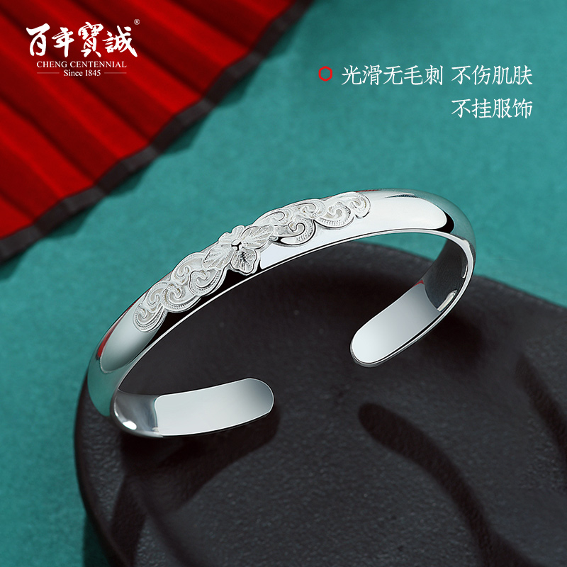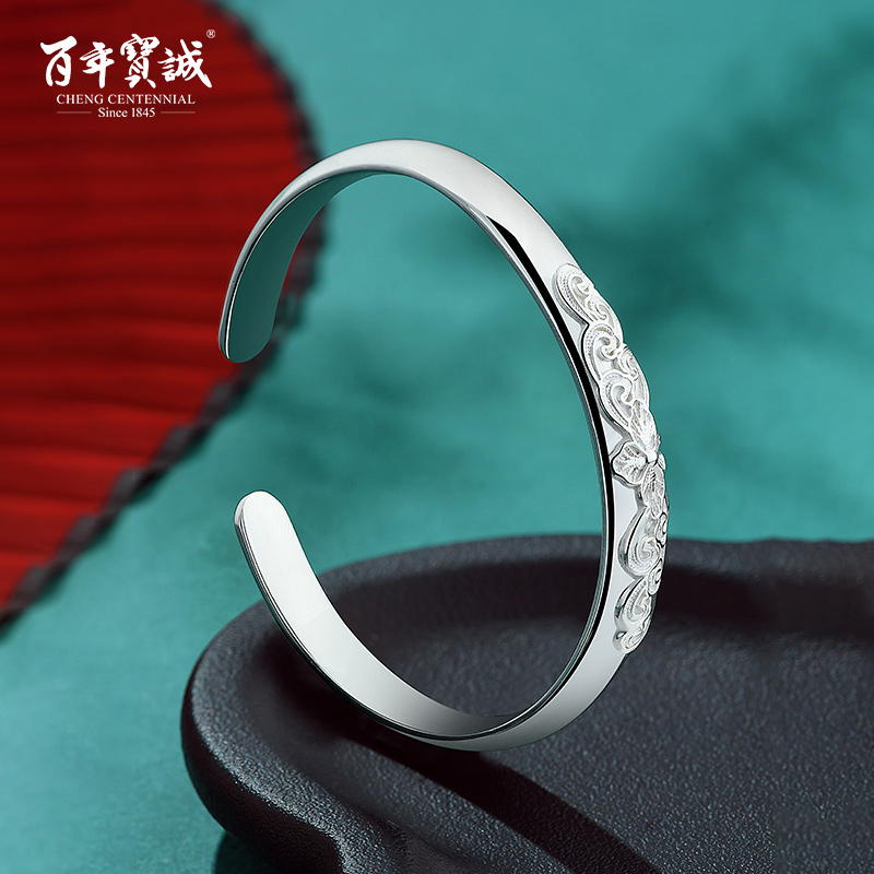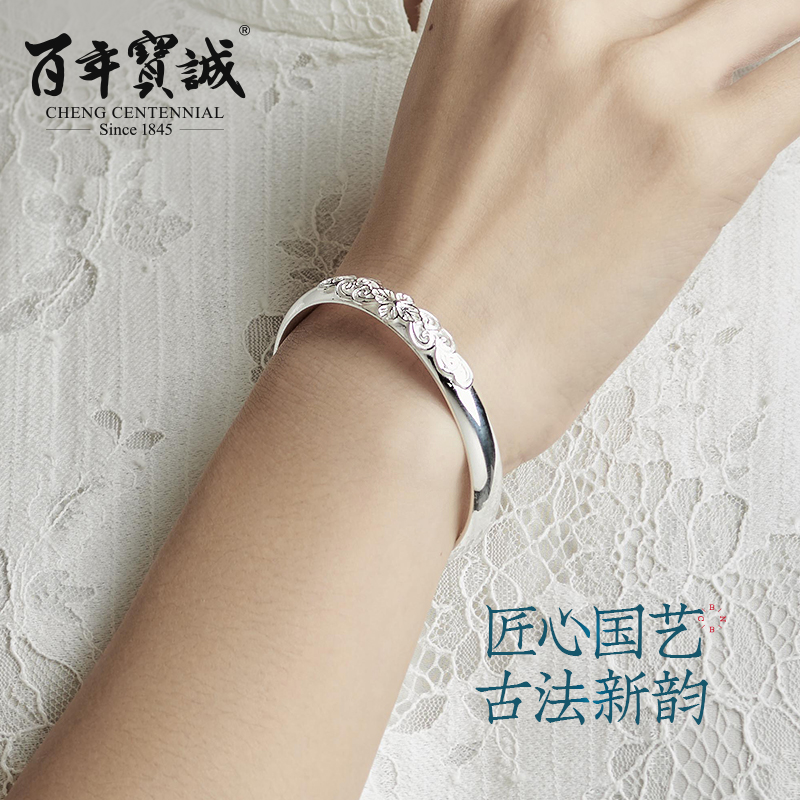 Centuries-old Baocheng silk silver bracelet 999 pure silver female style Fashion Brief Silver Bracelet Sub National Tide Opening Girlfriend Hand Ring