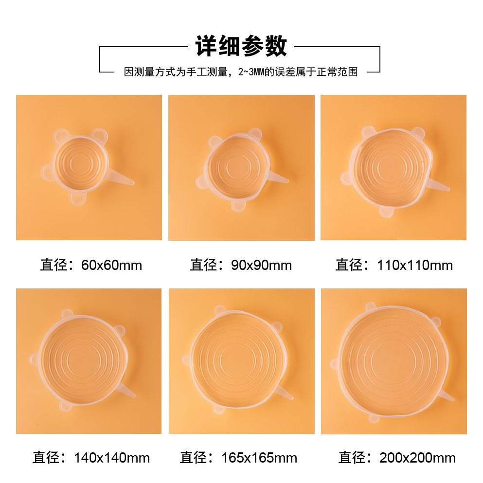 Silicone fresh-keeping cover round square bowl cover sealed reusable refrigerator fresh-keeping film kitchen fresh-keeping cover set of 6