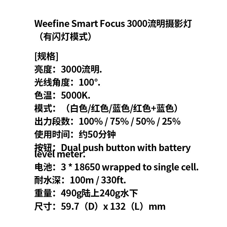 Weefine Smart Focus 3000 Lumens Photographic Light Submersible Water Light with Flash