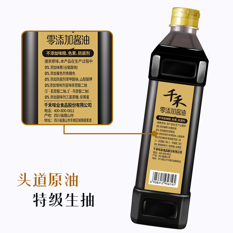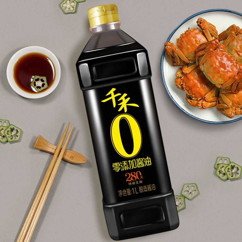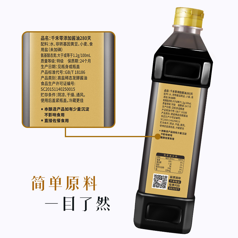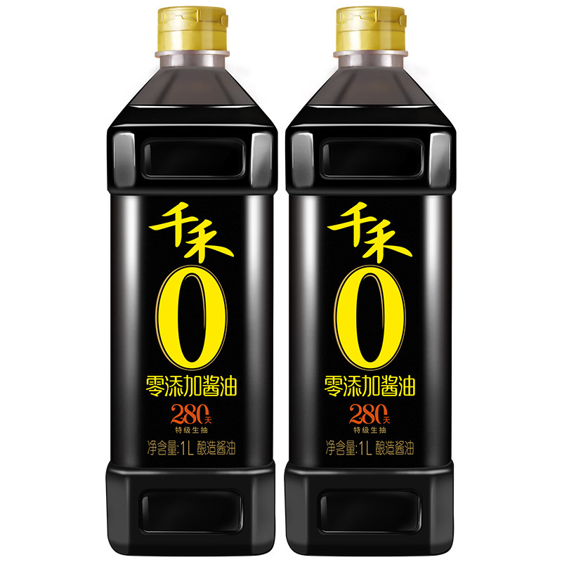 Qianhe 0 added soy sauce Premium light soy sauce road original incense 280 days household vat 1L*2 bottles of cold salad zero added