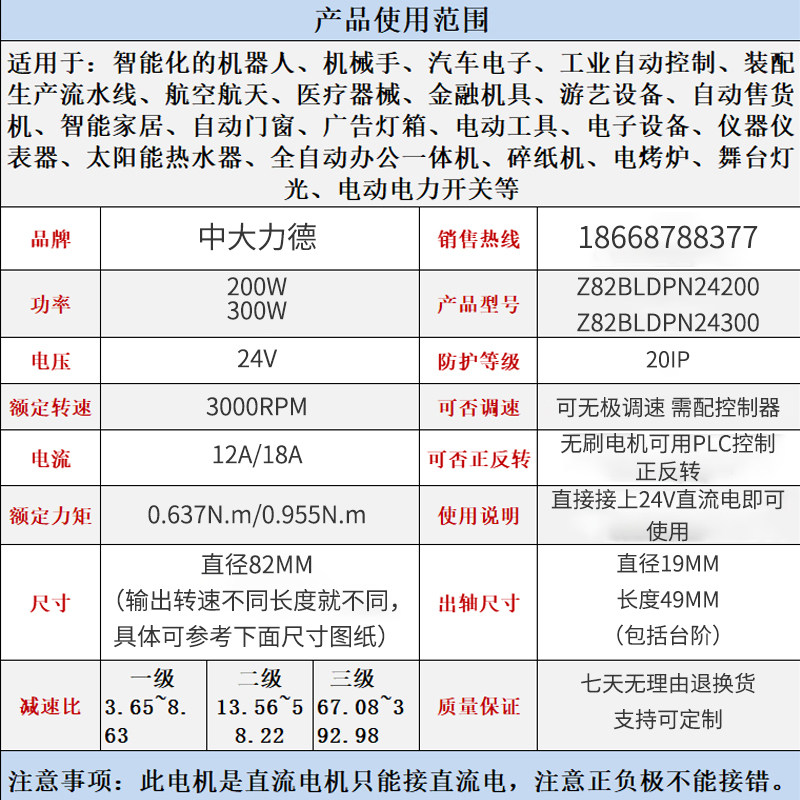 ZD large motor 82 DC brushless 48 V300W planet brake gear reduction motor can be held