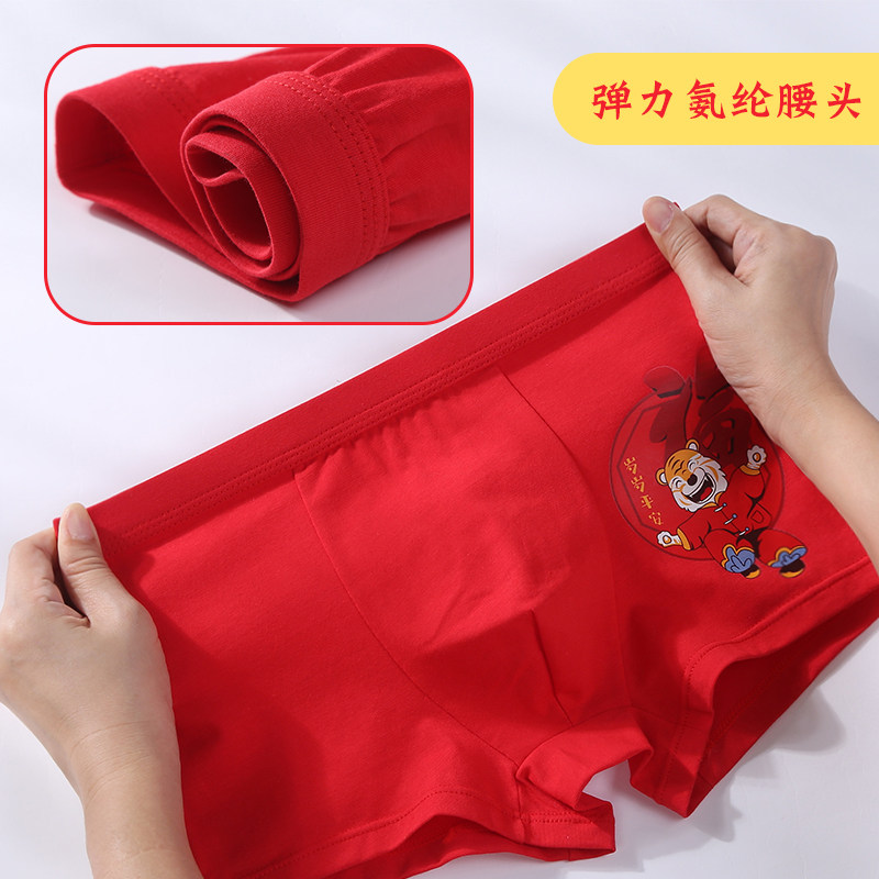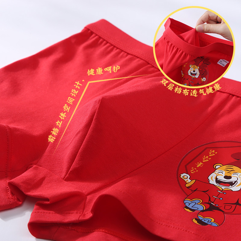 Children's underwear, the year of birth, boys, cotton, big children, 8 teenagers, 10 boys, big red shorts, tigers, 12-15 years old
