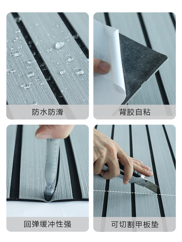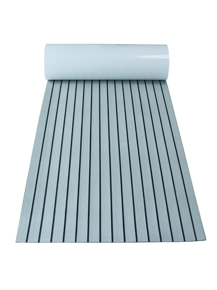 EVA material yacht accessories marine striped imitation teak floor with glue can be sold directly for luxury RV floor mats