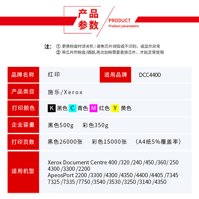 Red printing for Xerox C4400 Cartridge 3300 2200 4300 4350 4405 Toner DCC250 360 450 325