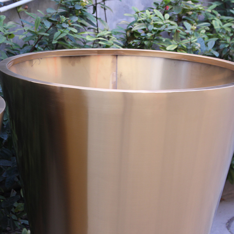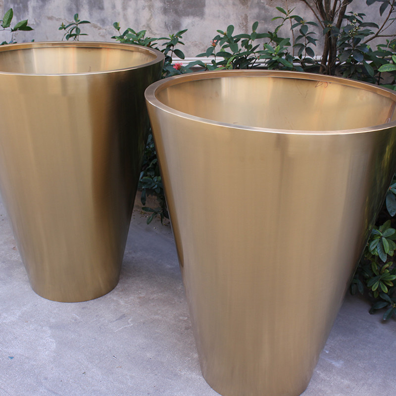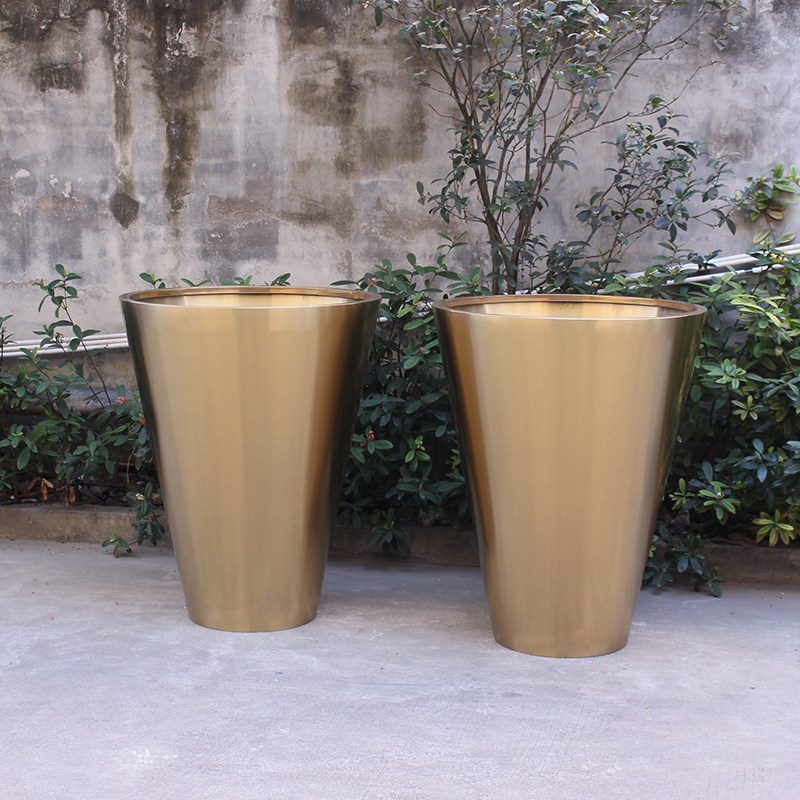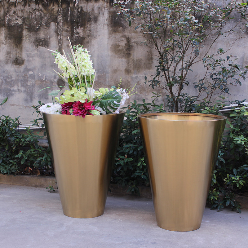 Large Floor Stainless Steel Flower Pot Titanium Golden Cone Square Flower Case Round Flower Bowl Clubhouse Garden Forest Landscape