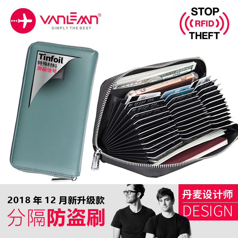 Danish Vanlemn anti-theft brush large wallet RFID shielding NFC card box male anti-magnetic card case female large capacity card bag