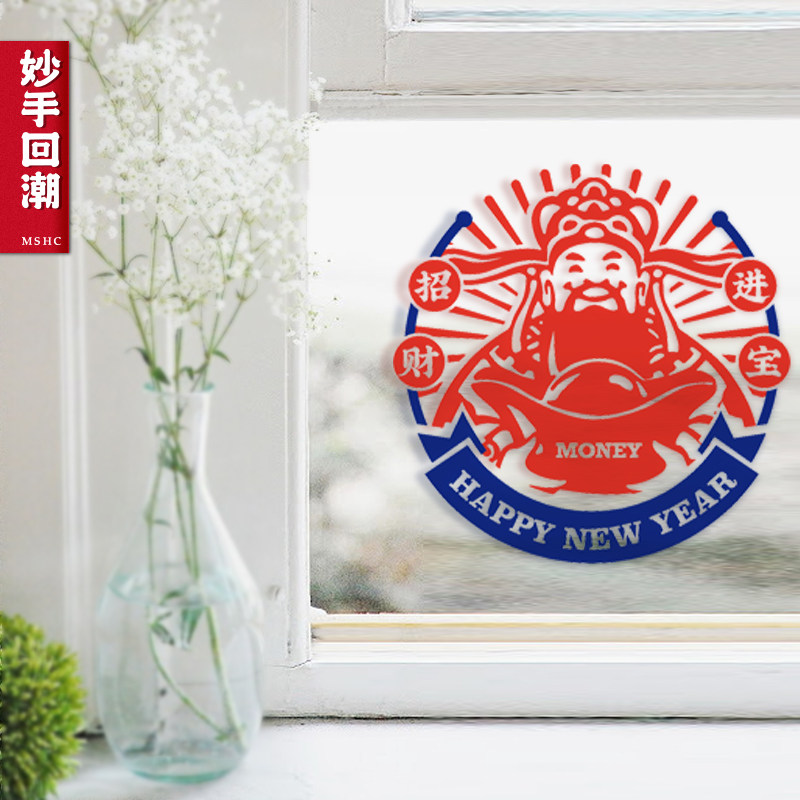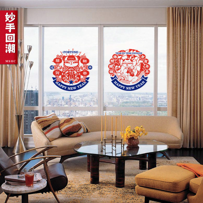 Magic hand tide window flower 2022 electrostatic sticker glass New Year sticker New Year decoration Tiger Year Spring Festival Fuzi door sticker tide