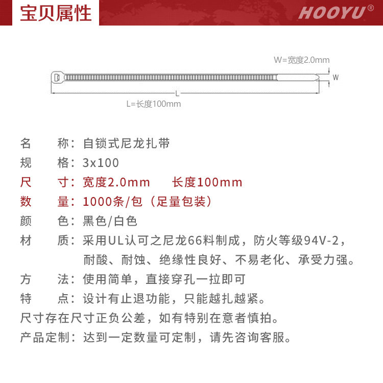 Nylon cable ties 3*100mm self-locking black packaging straps strapping plastic high-quality fixed 1000