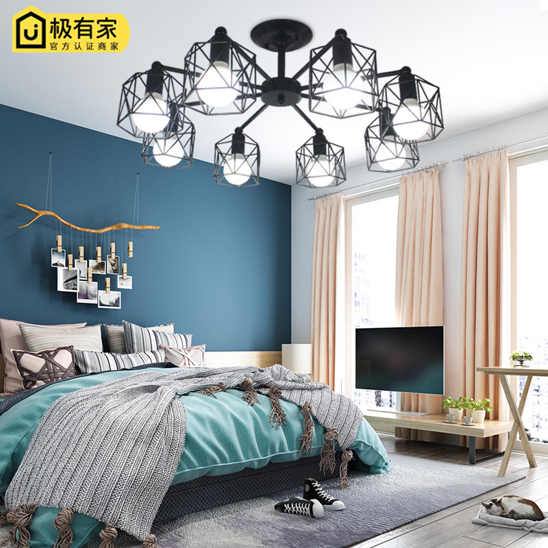 Nordic creative modern minimalist ceiling lamp atmospheric wrought iron living room bedroom study room retro industrial wind lamps