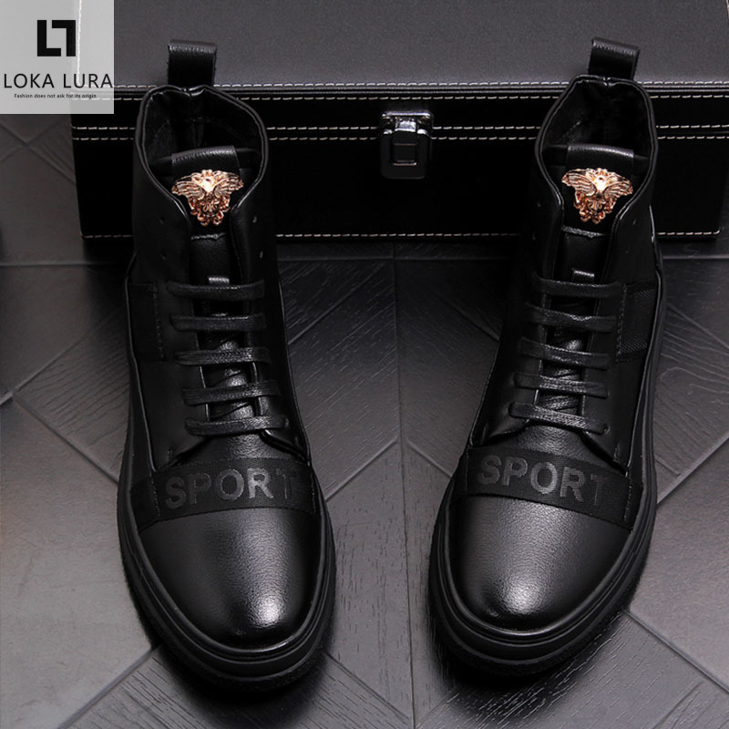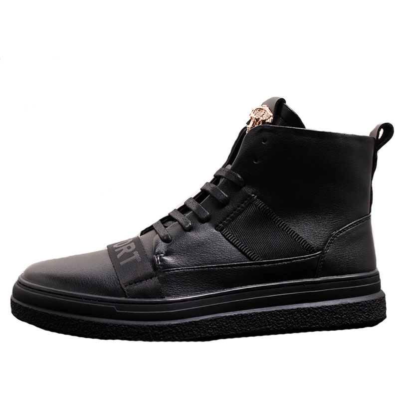 High cylinder boots male Korean version trendy 100 hitch genuine leather 2021 autumn/winter tide cards short boots with velvety warm heightening Martin boots
