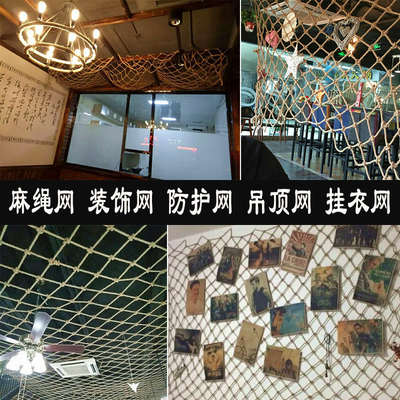 Hemp Rope Mesh Suspended Ceiling Decoration Mesh Rope Protective Net Climbing Nets Kindergarten Retro Wall Hanging Stairs Weaving