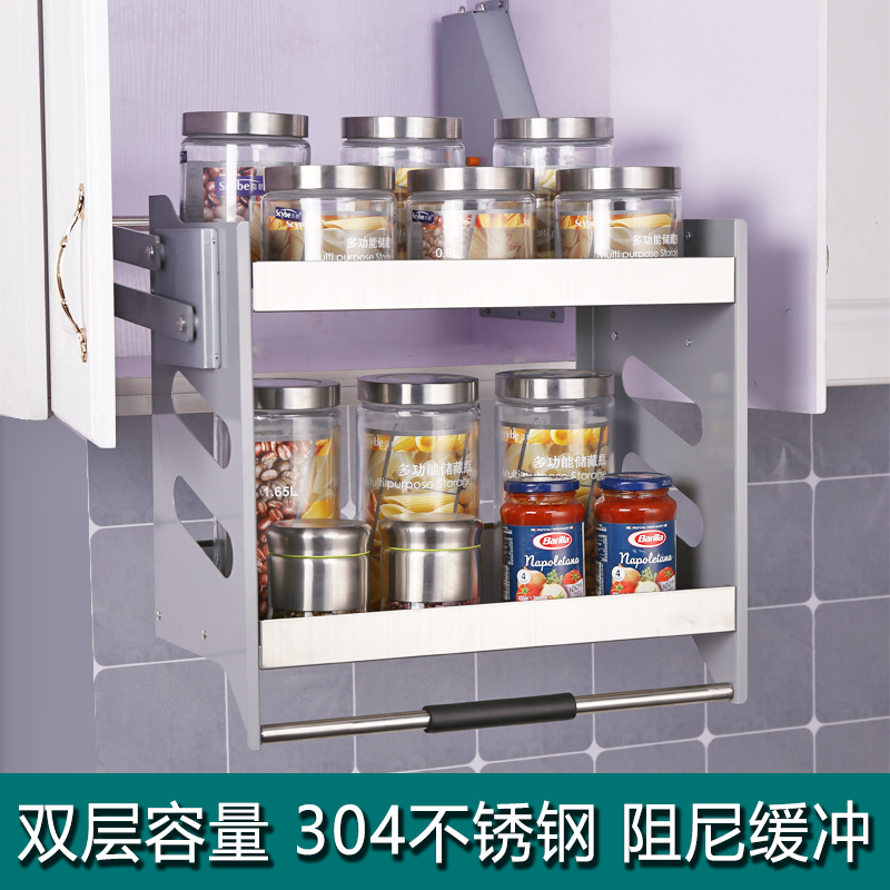 Kitchen hanging cabinet lift pull basket pull down stainless steel cabinet upper and lower lift seasoning shelf damping customization