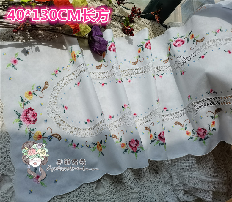 Exquisite handmade@foreign trade inventory pure cotton handmade cross stitch colorful flowers inlaid with fine line crochet craft table flag placemat