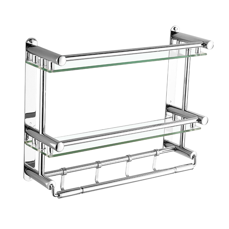 Toilet rack wall-mounted bathroom double-layer glass towel rack free of holes 2 layers 3 layers of stainless steel sanitary ware