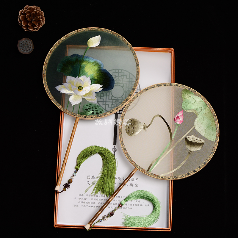 Su embroidery double-sided embroidery group fan handmade silk embroidery palace fan with Chinese clothing dancing small fan Chinese gifts to foreigners