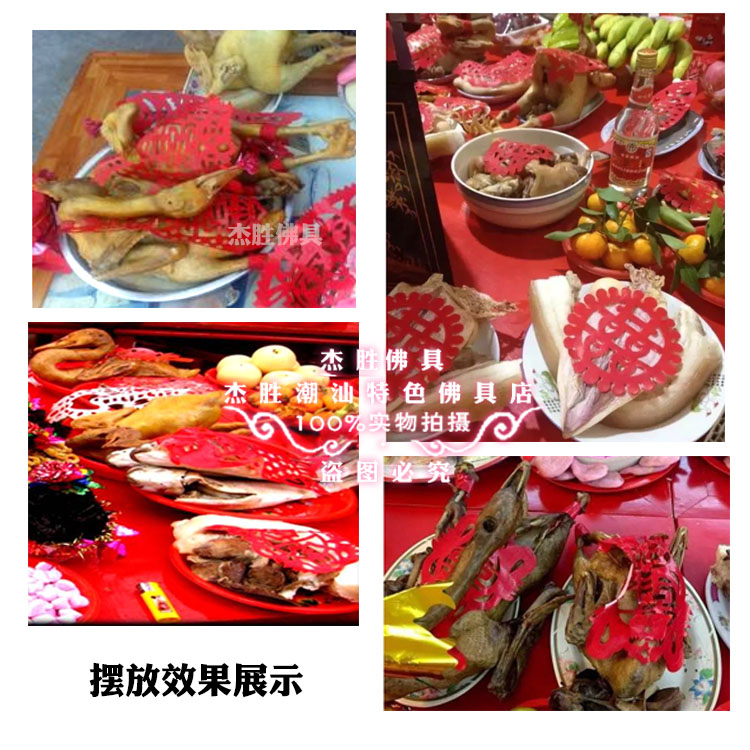 Set the table with five flowers, paper-cut flowers, rice bowls, chicken, duck, fish, pork, pig liver, flower stickers, Chaoshan traditional custom supplies