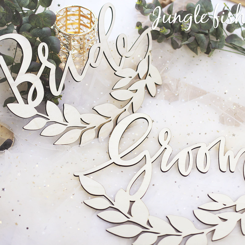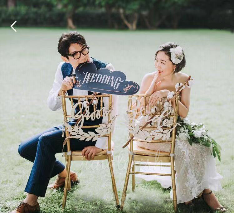 Chair back decoration BRIDEGROOM hexagonal groom bride WEDDING party WOODEN photo props Wedding supplies