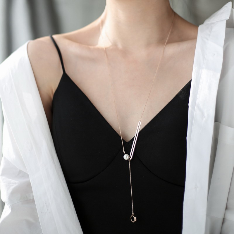 Golden Brief Lukewarm Wind Pearl Round Card Sweater Chain Son Long Version Necklace Women 2022 New 100 Hitch Red Autumn Winter