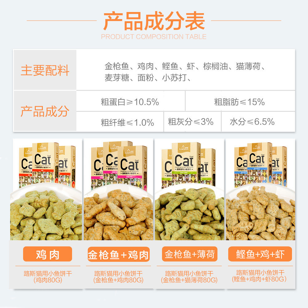 10 boxes Luth Cat Kitty Fish Biscuit 80g Cat Snack Nutrition Fertility Little Fish Dry Cat Ruth