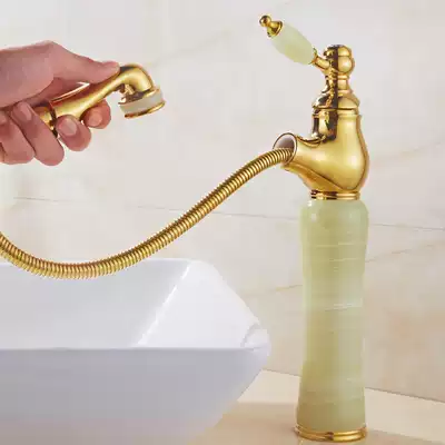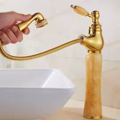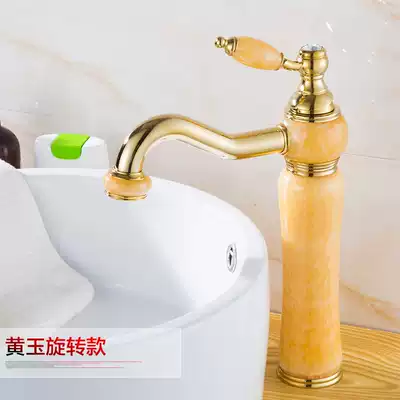 Raised European-style faucet All copper gold basin washbasin Hot and cold faucet Natural jade basin faucet