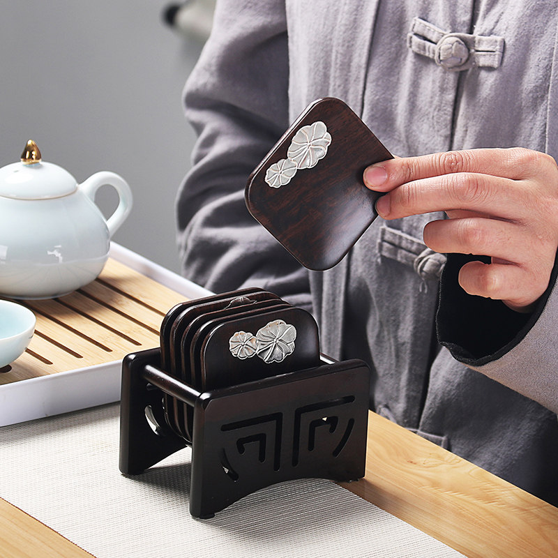 Black Honolulu solid wood tea cushion cup cushion tea cup cushion tea Daofu tea cup Catechu Tea Cong Combination Day Style Tea Set Accessories Composition