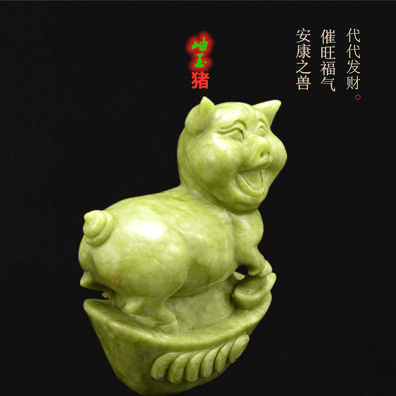 Jade pig ornaments lucky ingot pig zodiac pig wealth and prosperity office living room children's room desktop craft gifts
