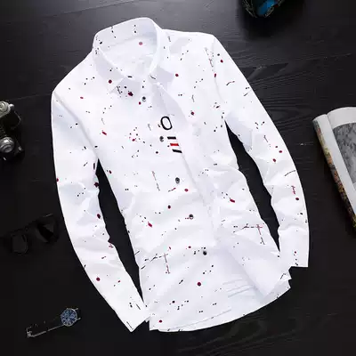 Autumn white long sleeve shirt men Korean slim spring and autumn shirt Tide men's casual inch shirt coat