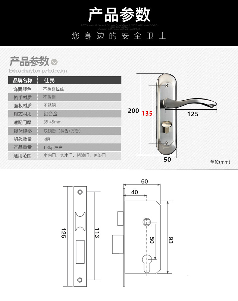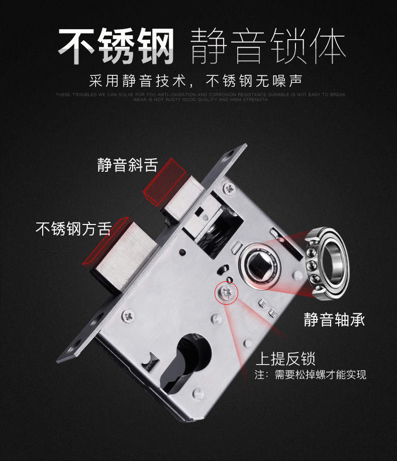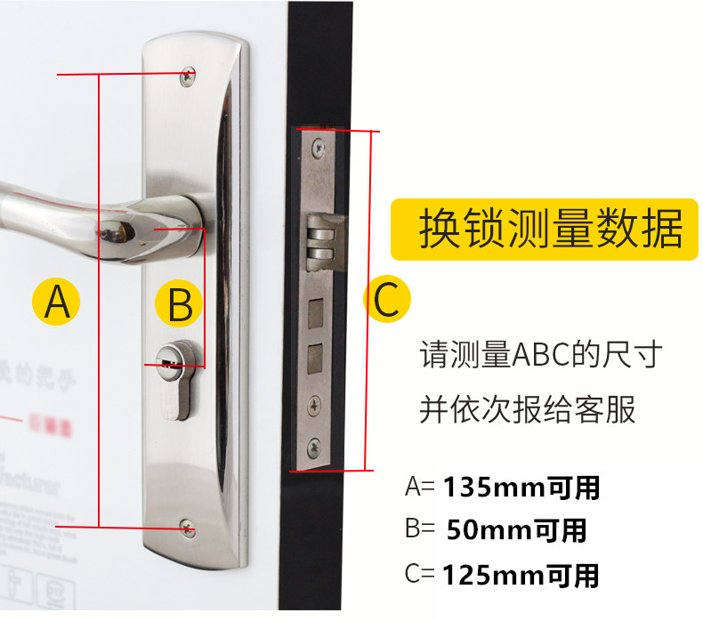 Jiamin 881 door lock indoor bedroom door lock three-piece set simple stainless steel wooden door lock set 135 hole distance