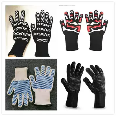 High temperature resistant gloves Spot BBQ barbecue microwave oven anti-scalding high temperature resistant silicone aramid gloves Heat insulation gloves