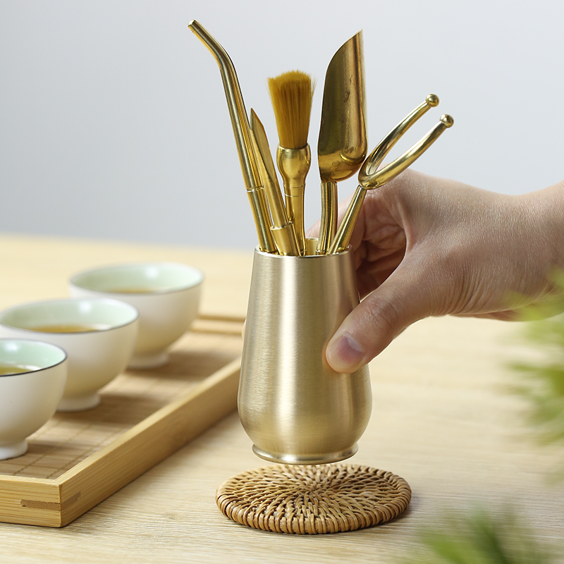 Brass Tea Road Six Monks Set High-end Household Tea Kungfu Tea Clothes Tea Clothes Japanese Tea Ceremony Six Monks Kung Fu Tea Tool