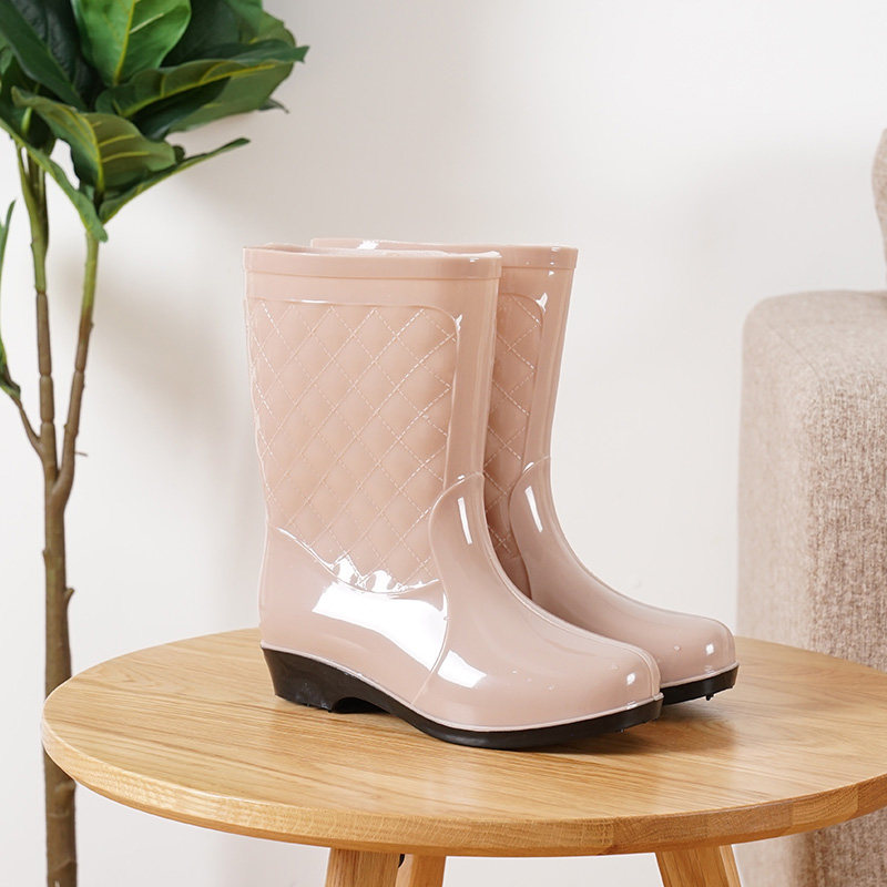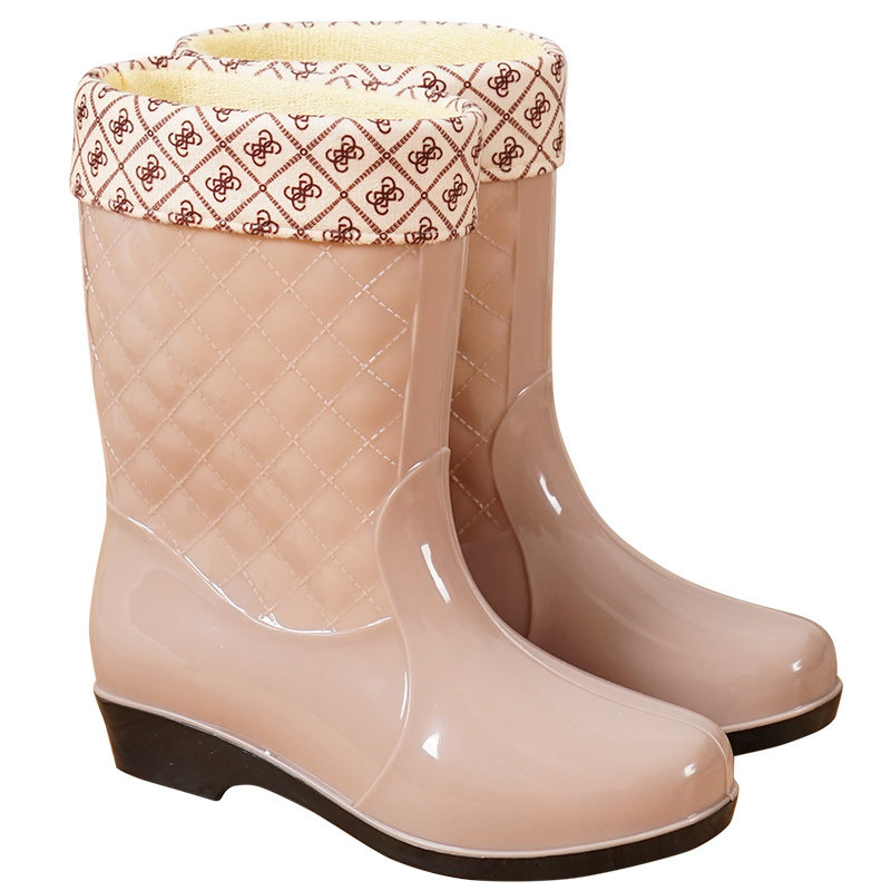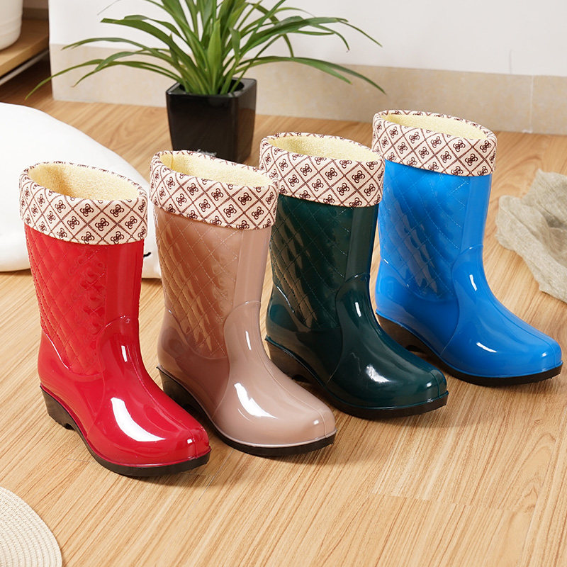 Fashion Rain Shoes Lady Midtubes Warm Autumn Winter Rain Boots Non-slip Women Style Water Shoes High Cylinder Rubber Shoes Adults Plus Suede Water Boots