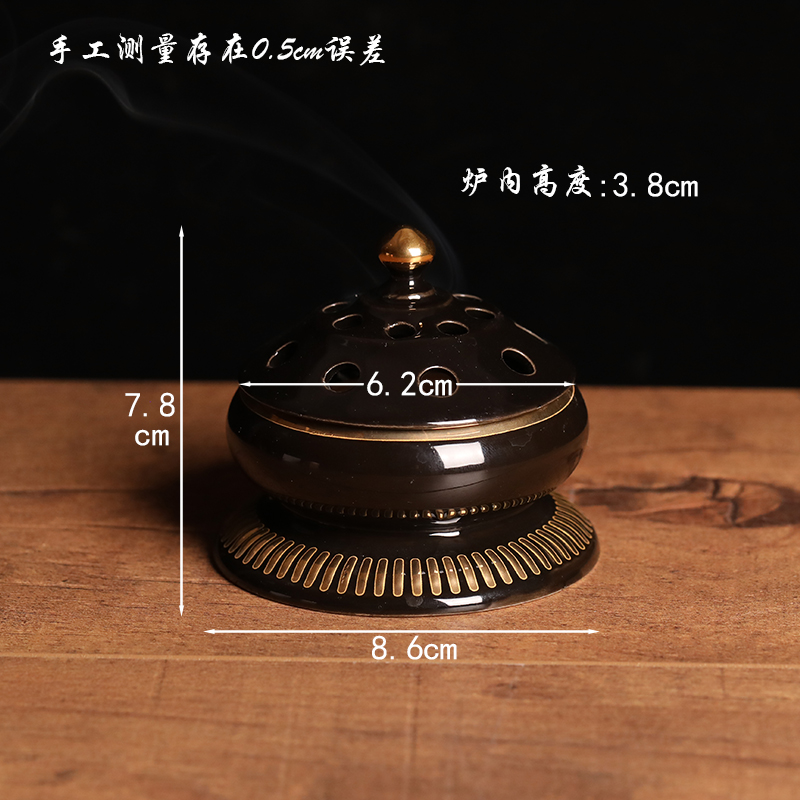 3-inch black glaze clean furnace home indoor sandalwood tower incense ceramic small purification incense incense plate incense aromatherapy furnace line incense