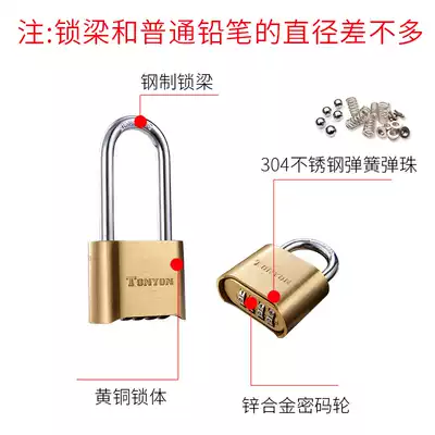 Brass combination lock padlock home gym cabinet student dormitory warehouse outdoor waterproof rust-proof long beam door lock