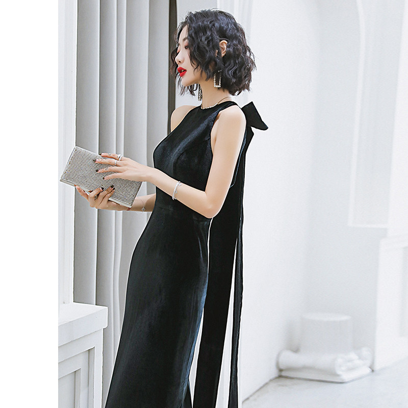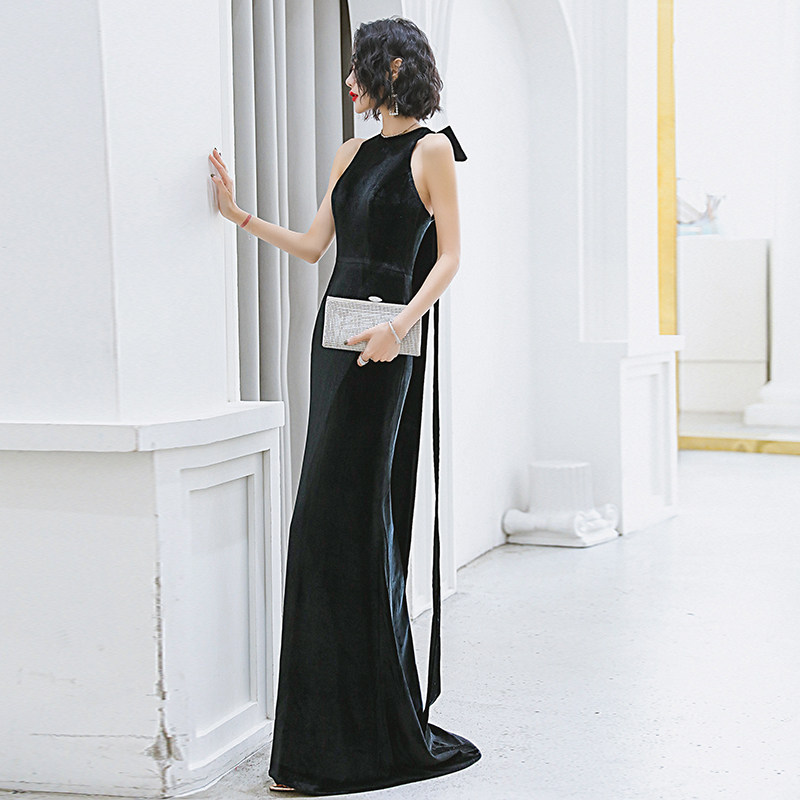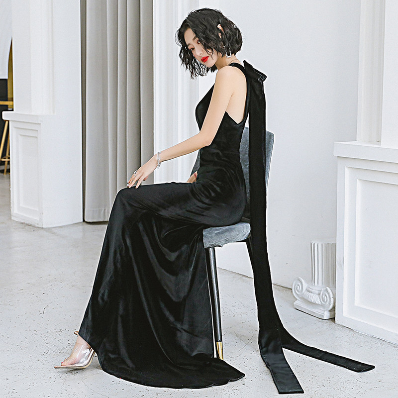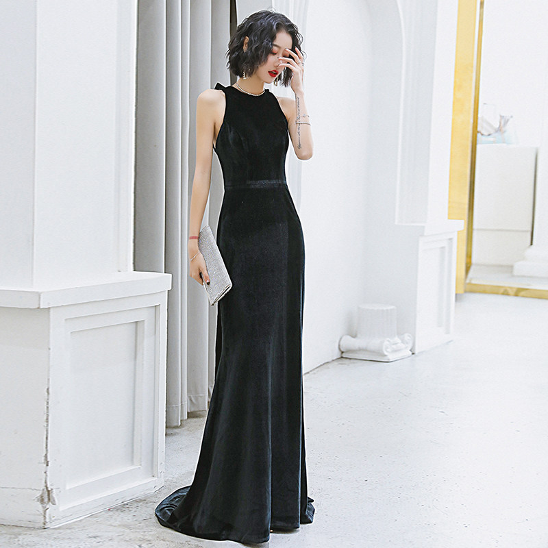 Black evening dress women 2020 new banquet temperament velvet long version of the host annual meeting dress slim and thin