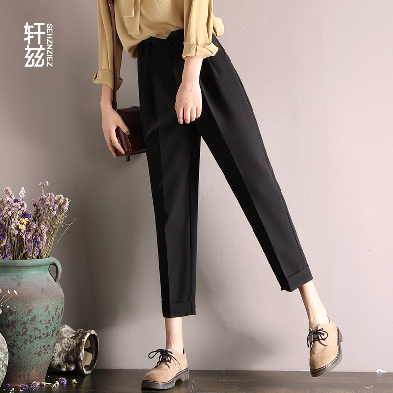 Xuan Zi loose Haren pants women 2021 autumn and winter New High waist pipe luobun pants black straight casual suit pants