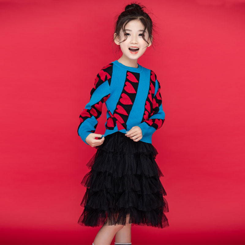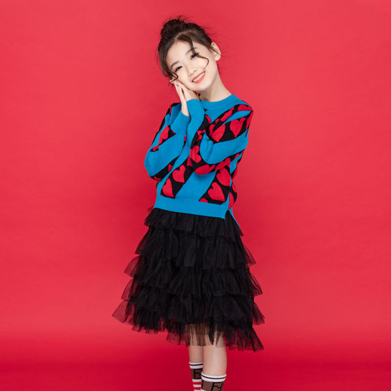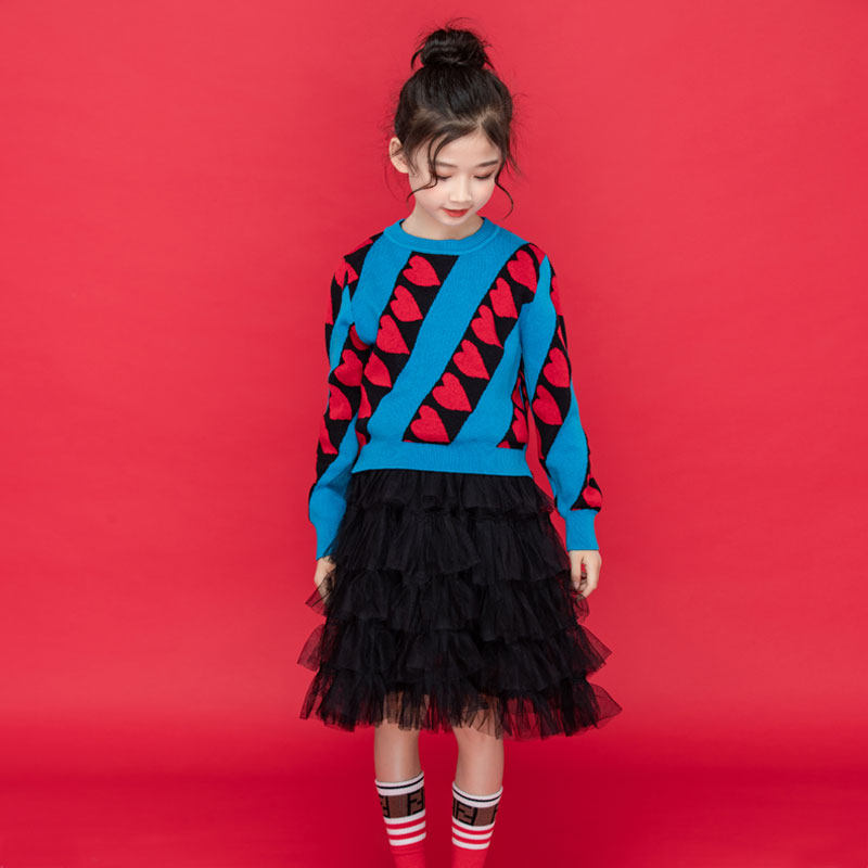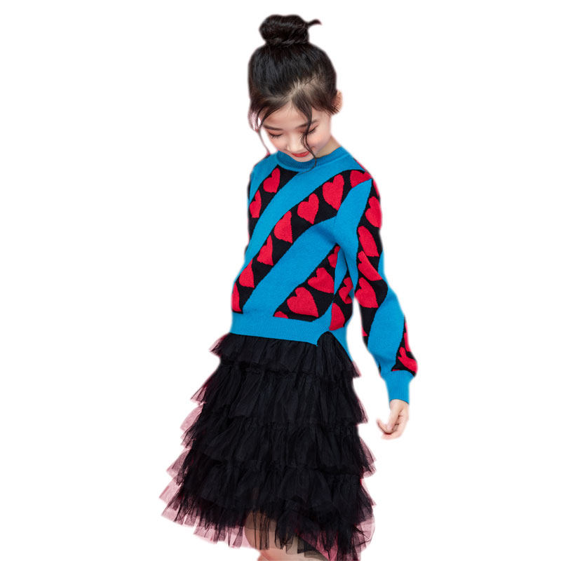 Girls' suit spring and autumn two-piece set 2022 new long-sleeved cake princess dress in the big children's love sweater dress