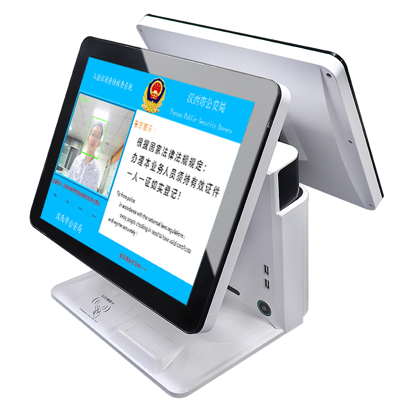 Intelligent dual screen visitor aircraft unmanned vertical facial recognition doorman registration system touch query terminal