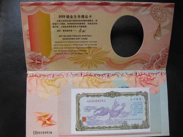 2000 24K gold-plated Year of the Dragon zodiac greeting card on the coin