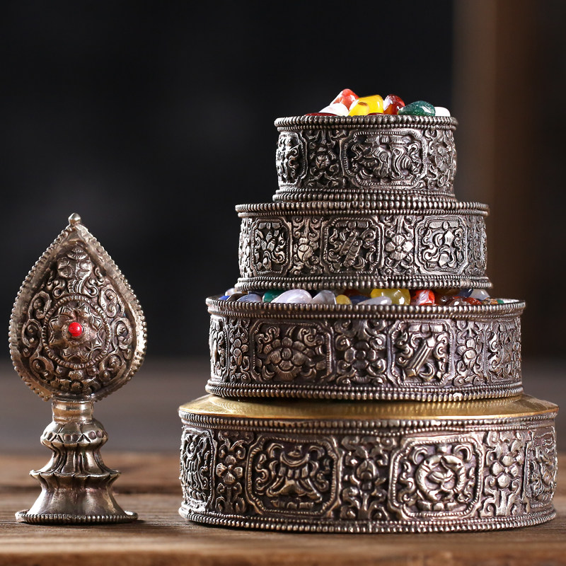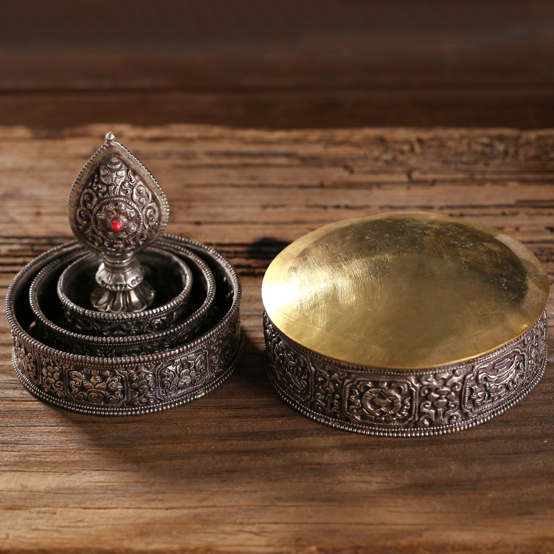 Bofu Tibet Silver Sculpture Nepal Process for Manza Plate Household Serving Seven Gems Man Man Tea Row Thickness Cell