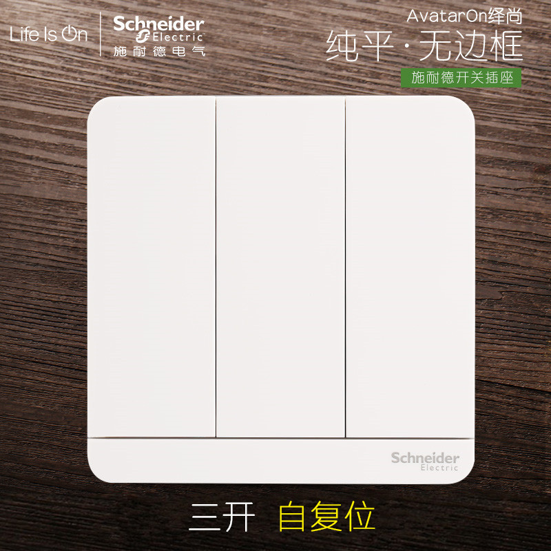 Schneider's Shang mirror porcelain white three automatic rebound type self-reset switch often open to trigger smart home