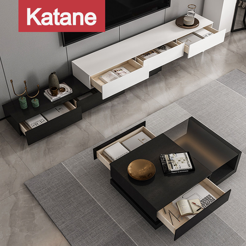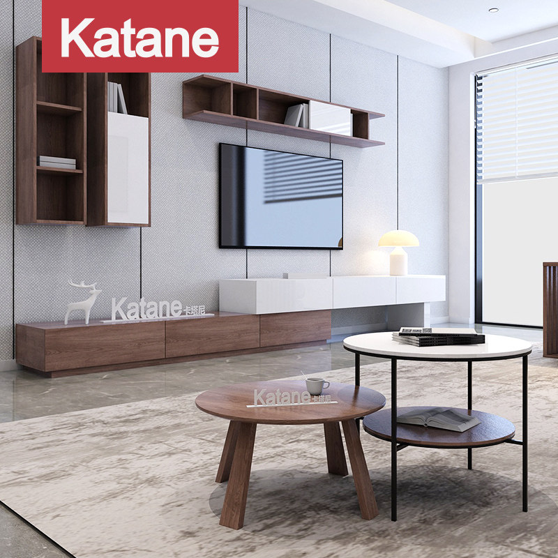 Nordic modern simple TV cabinet tea table combination set living room furniture background wall hanging cabinet large and small apartment cabinet