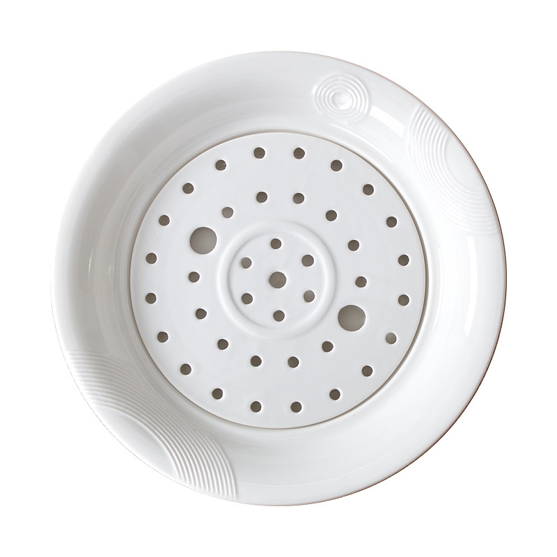 Creative tableware dumpling plate drain double-layer plate household ceramic dumpling plate with vinegar dish microwave oven water-proof steaming plate