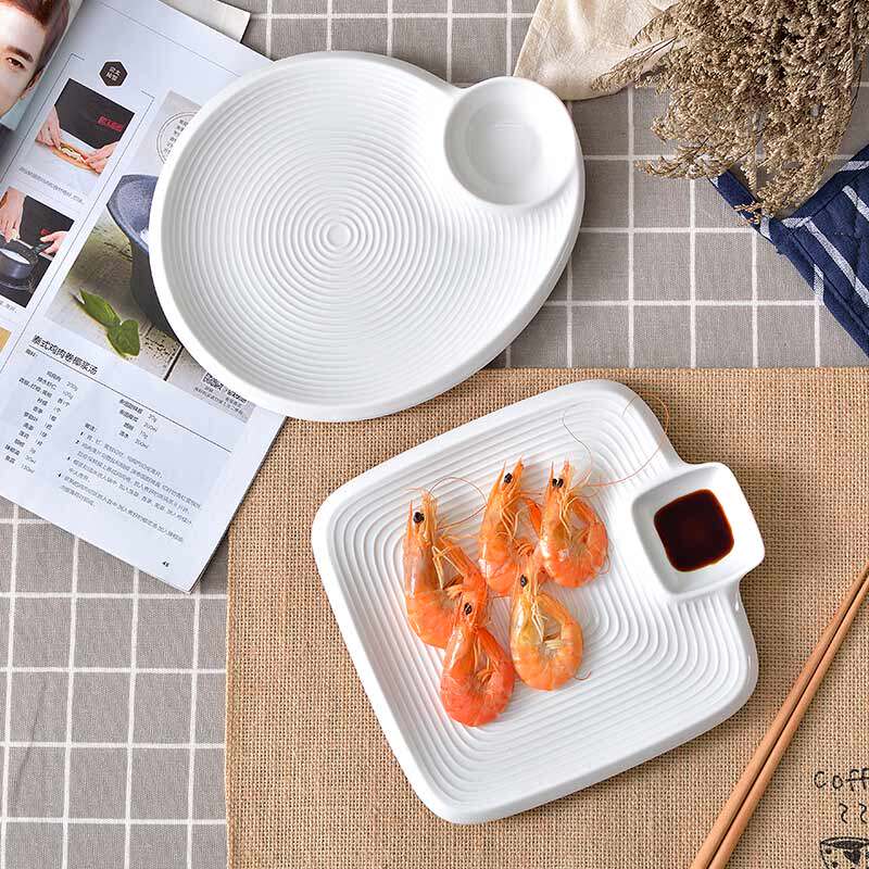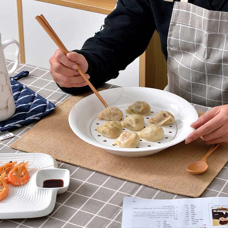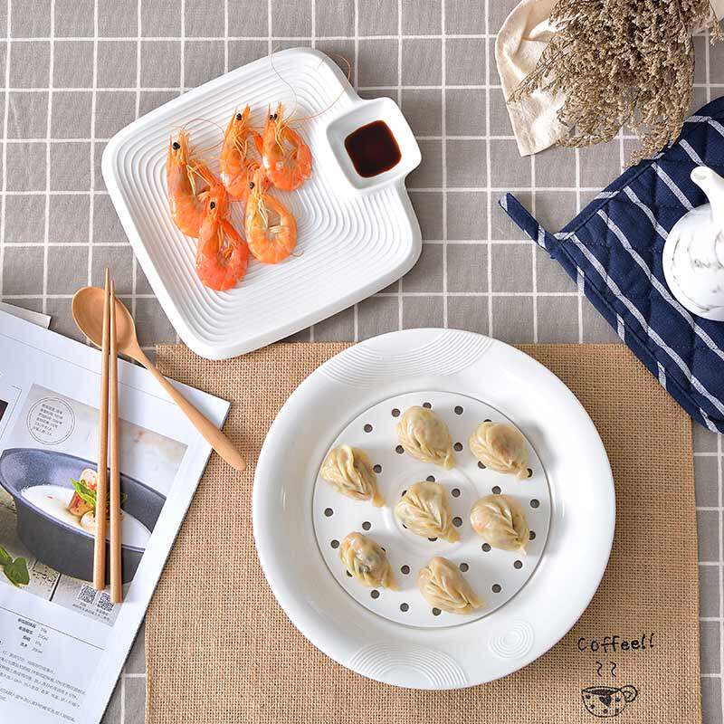 10-inch pure white steamed dumpling plate (with grid) rectangular dumpling plate with plate round dumpling plate with plate