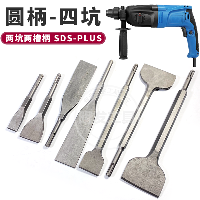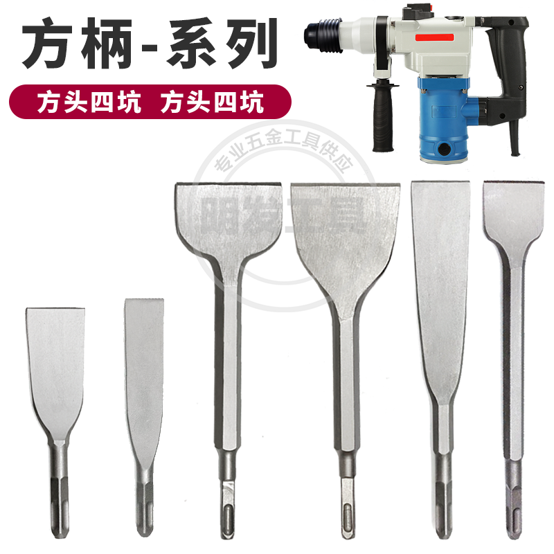 Electric hammer flat shovel flat chisel square handle round handle four pit slot drill bit widening ultra-thin flat pickaxe shovel wall gray tiles