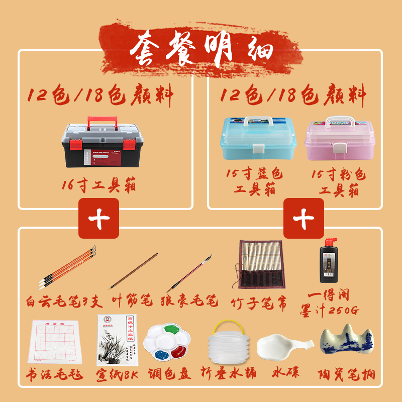 Marley brand advanced Chinese painting pigment set 12 colors 18 colors professional landscape painting Ink painting Gongbi painting material 9M