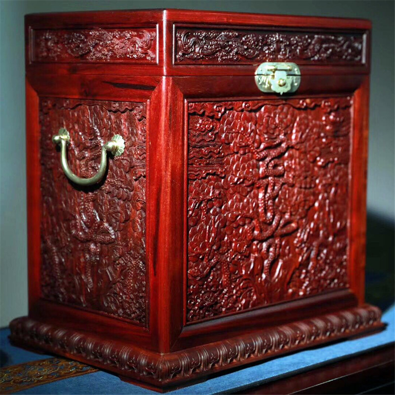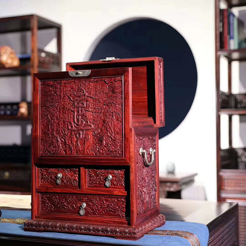 Household large jewelry jewelry storage box rosewood carving cloud pattern dragon screen high-end mahogany play storage box