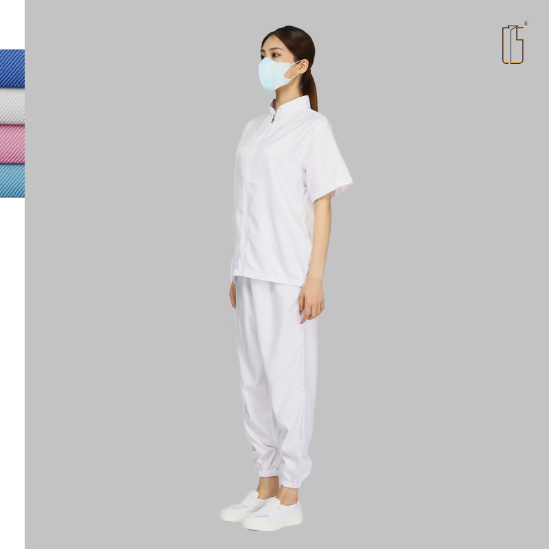 Short sleeve food factory work clothes food workshop special dust-proof clothes two-piece type stand collar suit machined male and female white