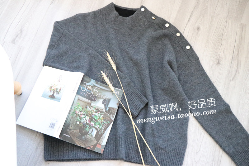 Recommended thickened shoulder buckle semi-high collar woman Leisure loose Lazy Cashmere Sweater-Taobao